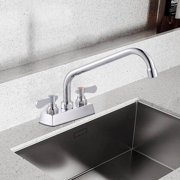 Commercial Faucet with 10 in. Swivel Spout, Double Handle Deck Mount Standard Kitchen Faucet in Polished Chrome