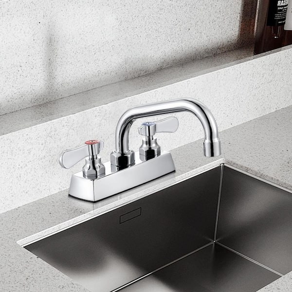 Commercial Faucet with 6 in. Swivel Spout, Double Handle Deck Mount Standard Kitchen Faucet in Polished Chrome