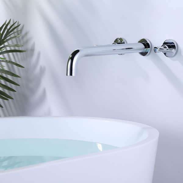 Cross 2-Handle Wall Mounted Roman Tub Faucet with Long Spout, Brass 3-Hold Tub Fille Faucet in Polished Chrome