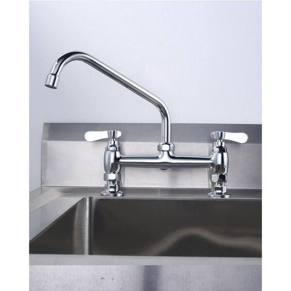 Double Handle Deck Mounted Commercial Standard Kitchen Faucet with 10 in. Swivel Spout in Polished Chrome
