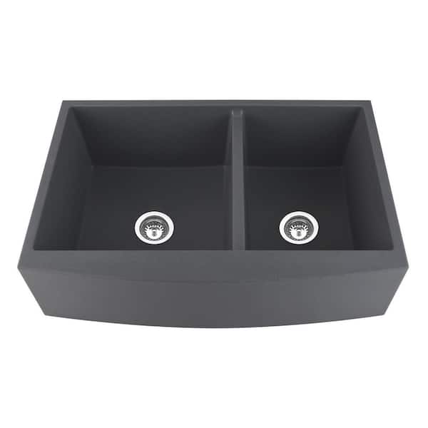 Gray 16-Gauge 33 in. Double Bowl Drop-In Farmhouse Apron Kitchen Sink without Faucet