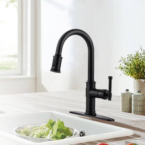 Matte Black 16.2 in. Single Handle Pull Down Sprayer Kitchen Faucet with 360° Spout Swivel in Stainless Steel