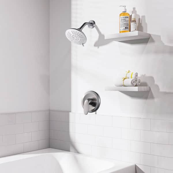 Single Handle 5-Spray Patterns Shower Faucet 1.8 GPM with High Pressure in Brushed Nickel (Valve Included)