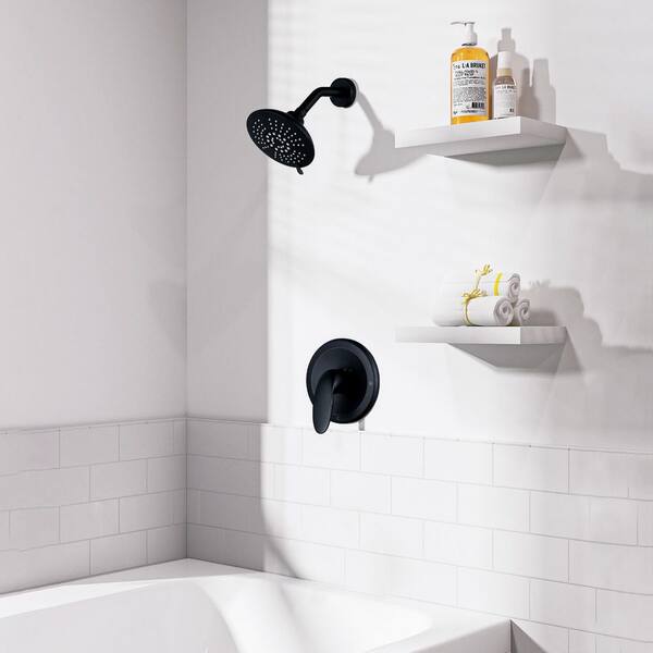 Single Handle 5-Spray Shower Faucet 1.8 GPM with High Pressure Showerhead in Black (Valve Included)