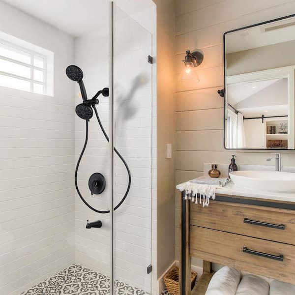 Single Handle 7-Spray Tub and Shower Faucet 1.8 GPM with Handheld Shower Head Corrosion Resistant in Matte Black