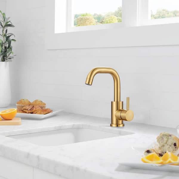 Single Handle Bar Faucet with All Mounting Hardware in Brushed Gold (Deckplate Included)