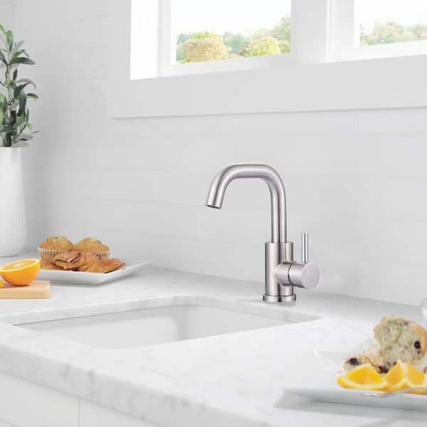 Single Handle Bar Faucet with 360° Spout Swivel in Brushed Nickel (Deckplate Included)
