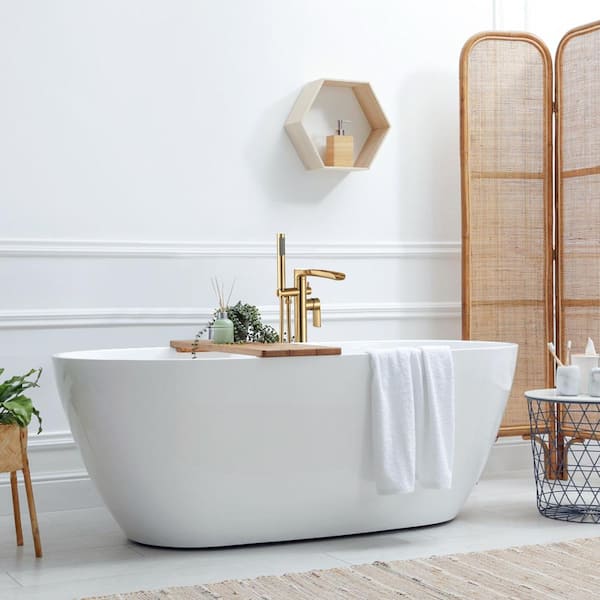 Single Handle Freestanding Tub Faucet with Hand Shower in Brushed Gold