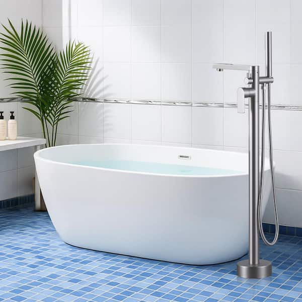 Single Handle Freestanding Tub Faucet with Hand Shower in Brushed Nickel