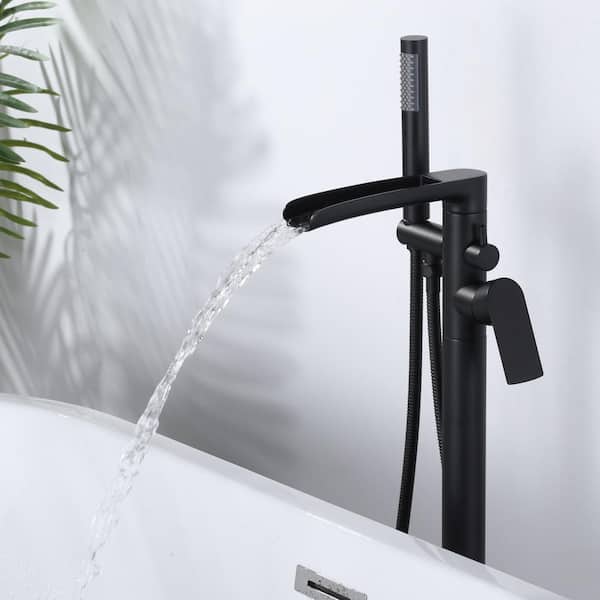 Single Handle Freestanding Tub Faucet with Hand Shower in Matte Black