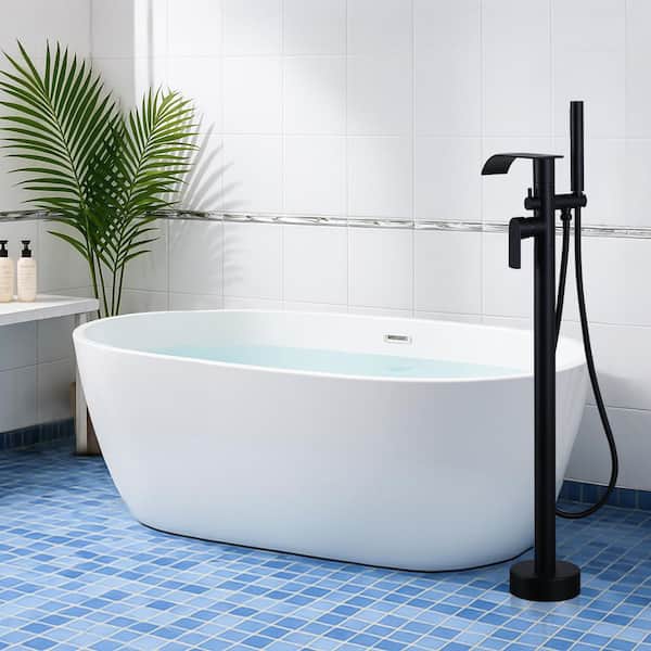Single-Handle Freestanding Tub Faucet with Handshower and Waterfall Spout in Matte Black