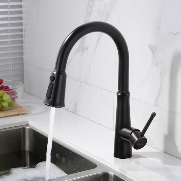 Single Handle Pull Down Sprayer Kitchen Faucet with Deck Plate, Stainless Steel kitchen sink faucet in Oil Rubbed Bronze
