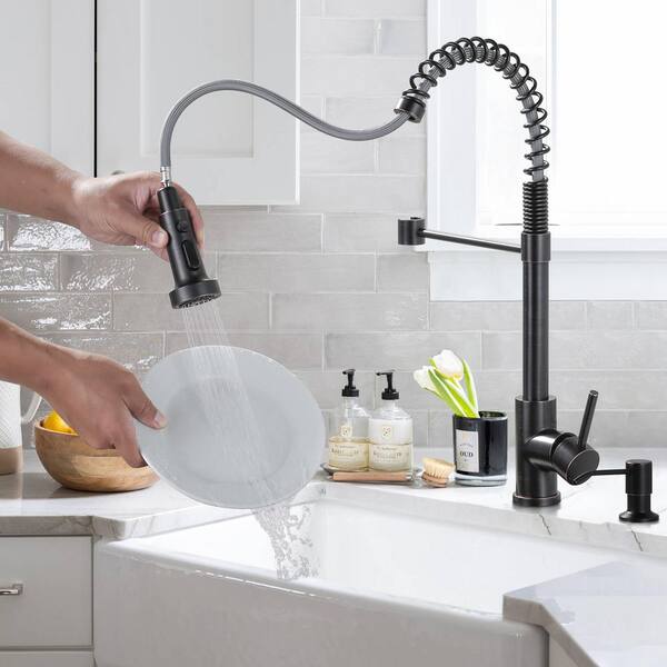 Single Handle Pull Down Sprayer Kitchen Faucet with Soap Dispenser, Pull Out Spray Wand in Oil Rubbed Bronze