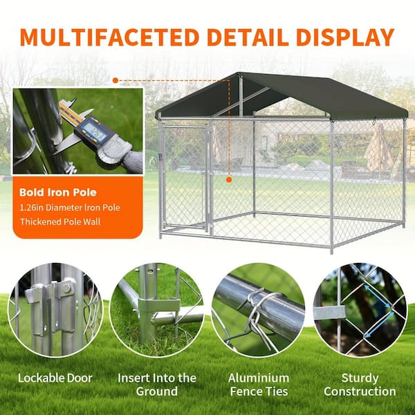 10 ft. x 10 ft. x 8 ft. Reinforced Durable Weatherproof Dog Kennel with Metal Door, Precision Welding