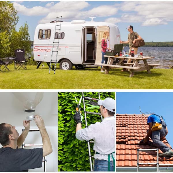 12.5 ft. 1-Button Retraction Stainless Steel Telescoping Extension Ladder, 2-Triangle Stabilizers, 330 lbs. Capacity