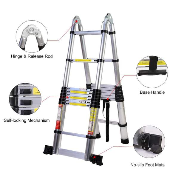 12.5 ft. Reach Aluminum Telescoping Multi-Position Ladder for RV, Household, Outdoor, 330 lbs. Load Capacity