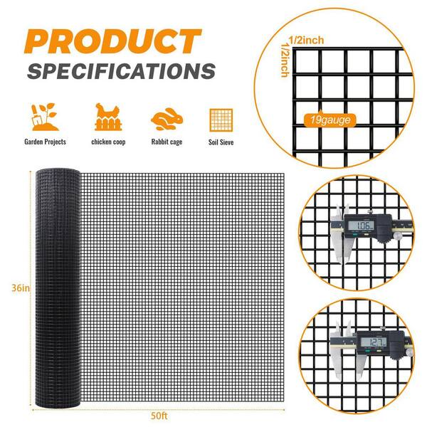 36 in. x 50 ft. 19-Gauge Black Vinyl Welded Wire Fencing for Garden Fencing and Pet Enclosures, Welded Metal