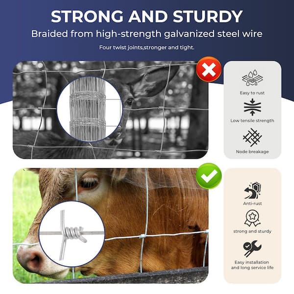 48 in. x 165 ft. 10-Gauge Galvanized Farm Mesh for Yard Livestock Animal Protection