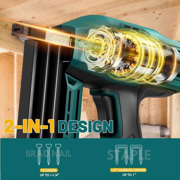 5/8- in. 12V 18 Guage Electric Brad Nailer with Staples and Nails in Blue