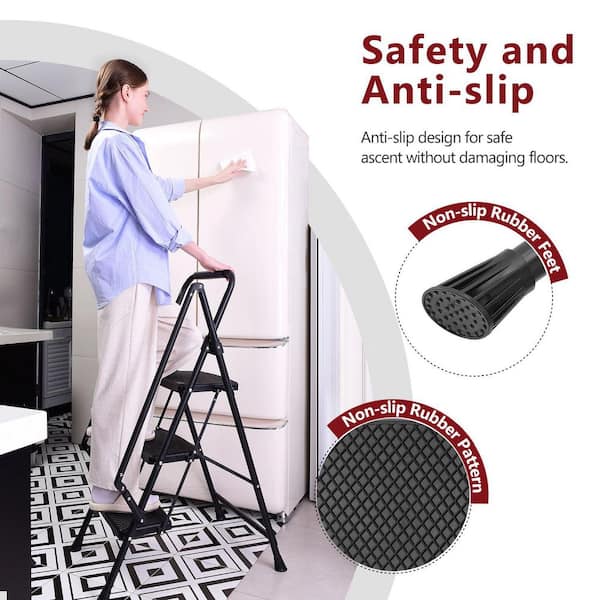 5-Step Steel Lightweight Folding Step Stool (10 ft. Reach), 500 lbs. Load Capacity, w/ Anti Slip Wide Pedals and Handle