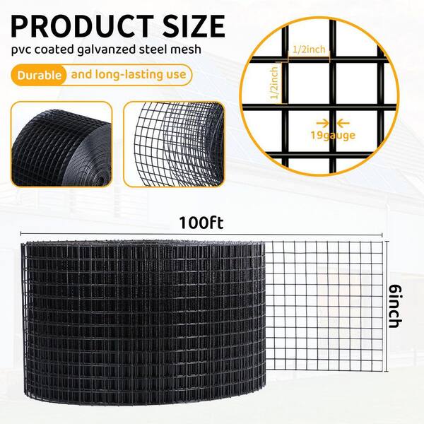 6 in. x 100 ft. PVC Coated Mesh with 70 Pieces Stainless Steel Fasteners for Pigeon Deterrent, Bird, Squirrel Proof