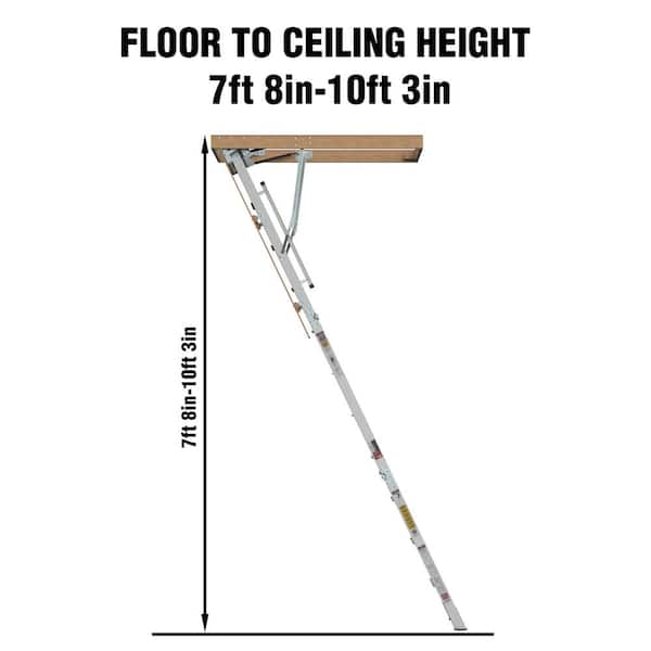 7.7 ft.-10.3 ft., 25 in. x 54 in. Telescoping Aluminum Attic Ladder, 375 lbs. Load Capacity