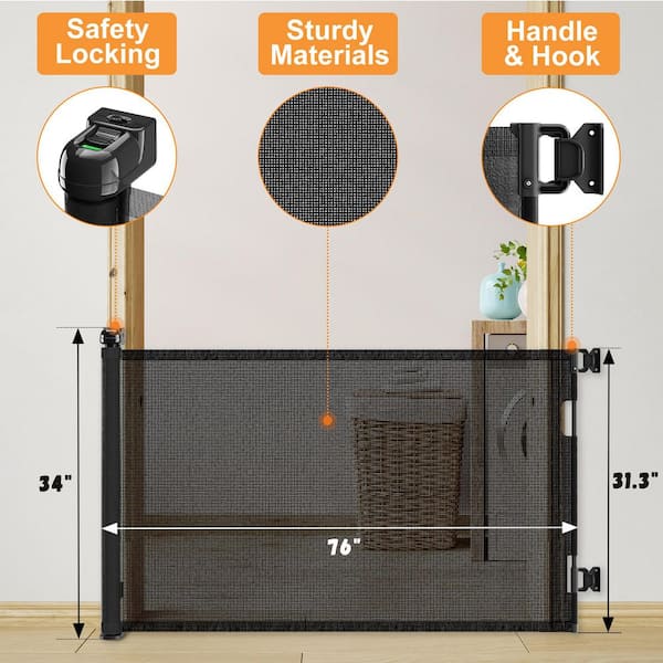 76 in. W x 34 in. H Plastic Retractable Mesh Baby Gate, Mesh Dog Gate for Indoor, Outdoor, Stairs, Hallways