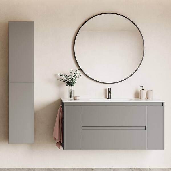 47.5 in. W x 18.1 in. D x 22.3 in. H Bath Vanity in Matte Sand with Gloss White Ceramic Top