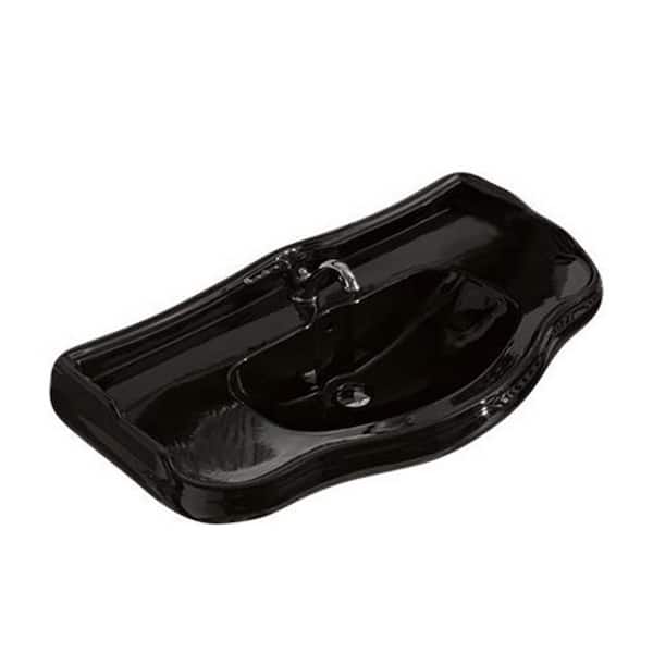 Heritage WSBC 1050 Glossy Black Ceramic Rectangular Wall Mounted Bathroom Sink with One Faucet Hole