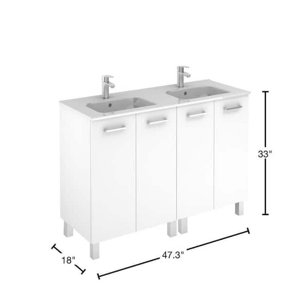 Logic 47.3 in. W x 18.0 in. D x 33.0 in. H Bath Vanity in Glossy White with Vanity Top and Ceramic White Basin