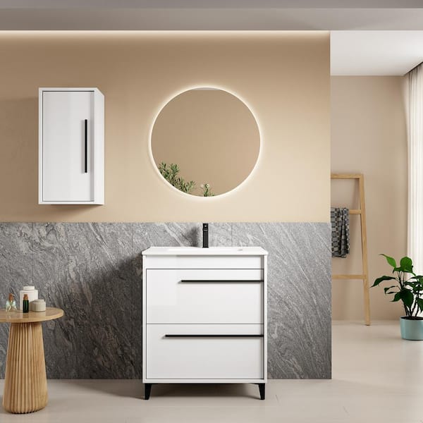 Lotus 24.0 in. W Single Basin Freestanding Bath Vanity in Glossy White with Ceramic White Top