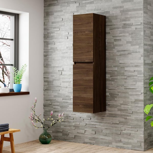 Menta 13.8 in. W x 12.4 in. D x 55.1 in. H Bathroom Storage Wall Cabinet in Wenge