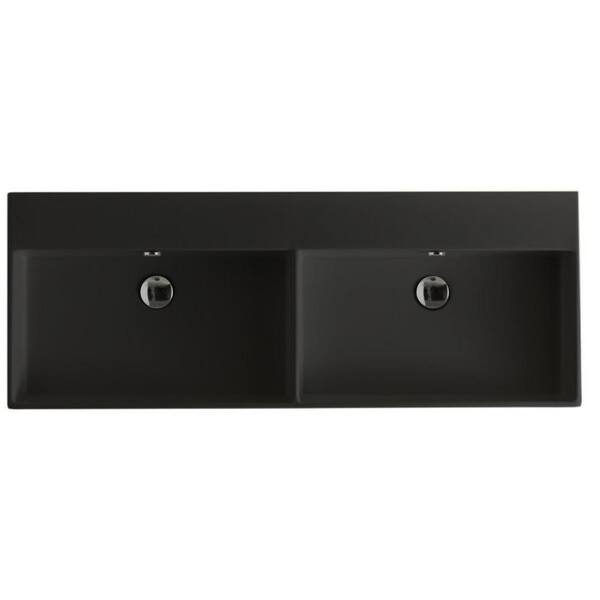 Unlimited Wall Mounted/Vessel Sink 120 Matte Black Ceramic Rectangular without Faucet Hole