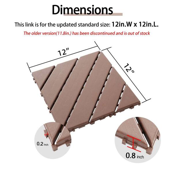 1 ft. x 1 ft. Brown Quick Install Outdoor Pool Patio Stripe All-Weather Composite PVC Interlocking Deck Tiles (44 pc)