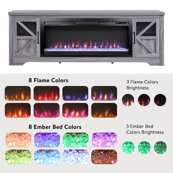 75 in. Freestanding Wooden TV Stand w/ Electric Fireplace, KD Inserts Heater and 2-Drawers - Fits TVs up to 80 in., Gray