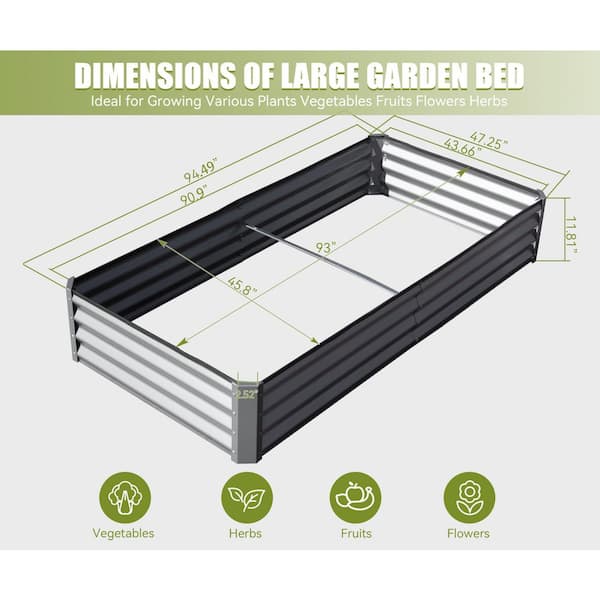 8 x 4 x 1 ft. Steel Extra Large Capacity Silver Raised Garden Bed Steel Planter Boxes for Herbs Vegetables Flowers