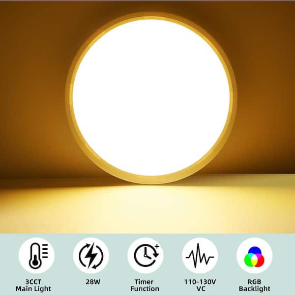 12 in. 28W 3600 Lumens 3000K-6500K RGB LED Flush Mount Integrated LED Recessed Light Trim with Remote Control (2-Pieces)