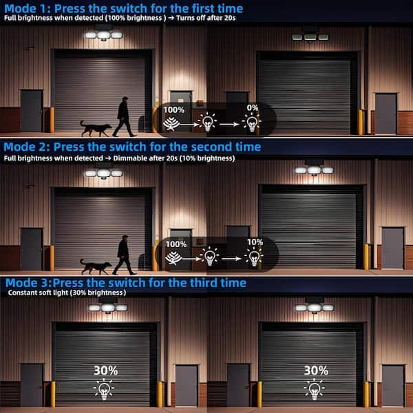 15-Watt Equivalence Integrated LED Black 3-Mode Solar Motion Sensor Outdoor LED Wall Pack/Path Light,5000K (2-Pack)