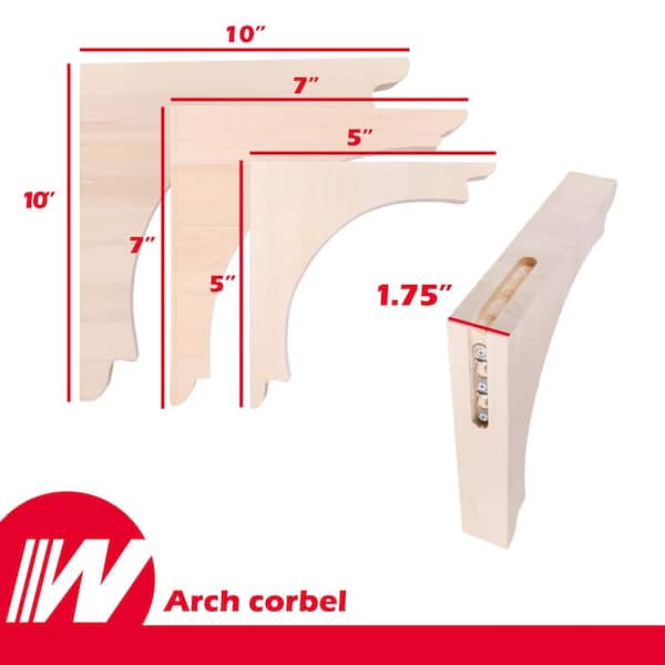 Arch Corbel with Keyhole Plate - Medium, 1.75 in. x 7 in. x 7 in. - Sanded Unfinished Hardwood - DIY Shelf Wood Corbel