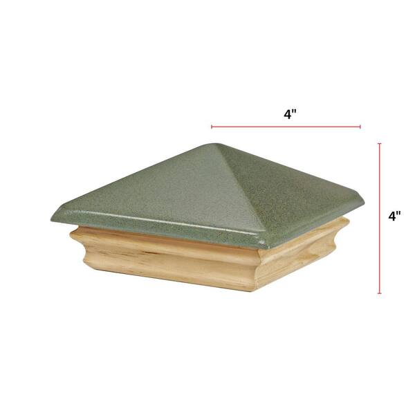 Green Pyramid Post Cap - Fits 4 in. x 4 in. Nominal Posts - Aluminum Top with Pine Base - DIY Porch, Deck, Fence Decor