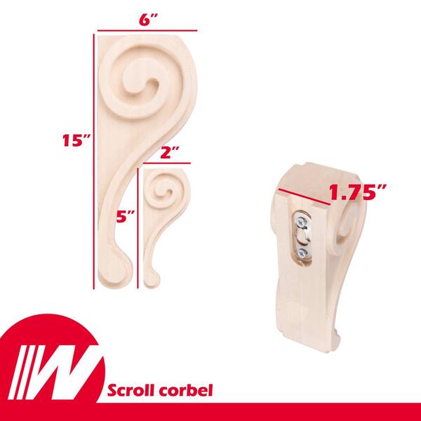 Scroll Corbel - Large, 15 in. x 6 in. x 1.75 in. - Sanded Unfinished Hardwood - DIY Designer Home Wall Shelving Decor