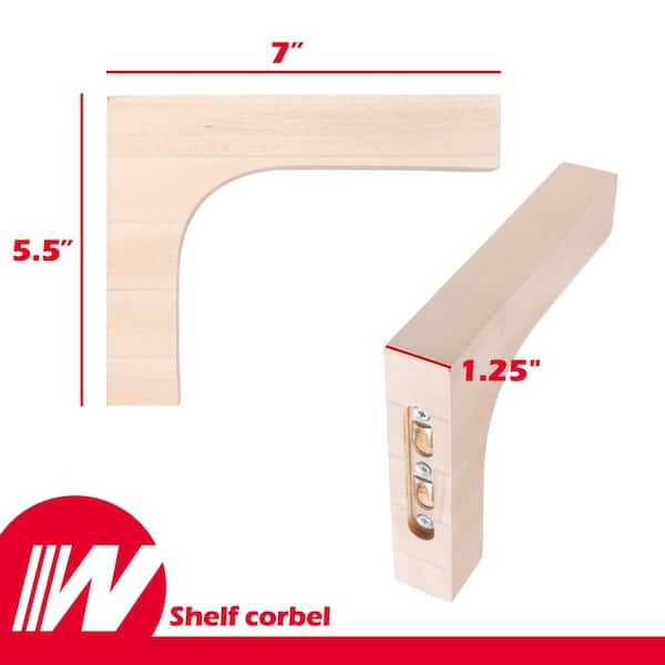 Shelf Bracket 1.25 in. x 7 in. x 5.5 in. Unfinished Pine Wood - Decorative Bracket with Pre-Installed Keyhole Plate