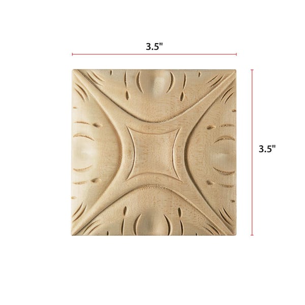 Square Rosette Applique - Large, 3.5 in. x 3.5 in. - Hand Carved Unfinished Maple Wood - DIY Elegant Home Design Accent