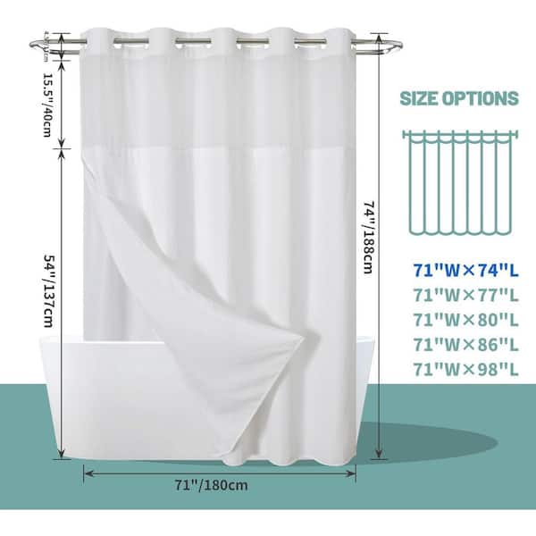 Waffle Weave Shower Curtain Set 71 x 74 No Hook Fabric with Snap in Liner Waterproof White