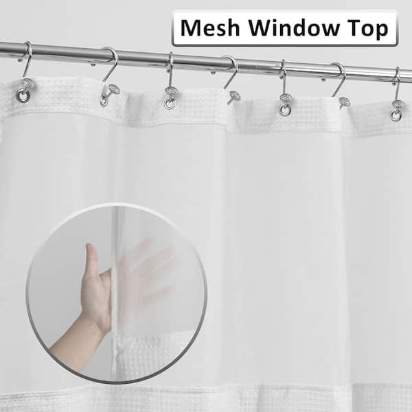 Waffle Weave Shower Curtain with Snap-in Liner and Hooks Set Hotel Style Sheer Window Double Layers White 71 x 72 Fabric