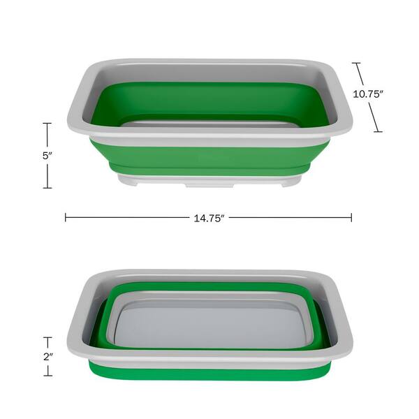 Green Multi-Purpose Plastic Rectangle Wash Bins 7.27 L Collapsible Bucket for Camping, Cleaning, Laundry (Set of 2)