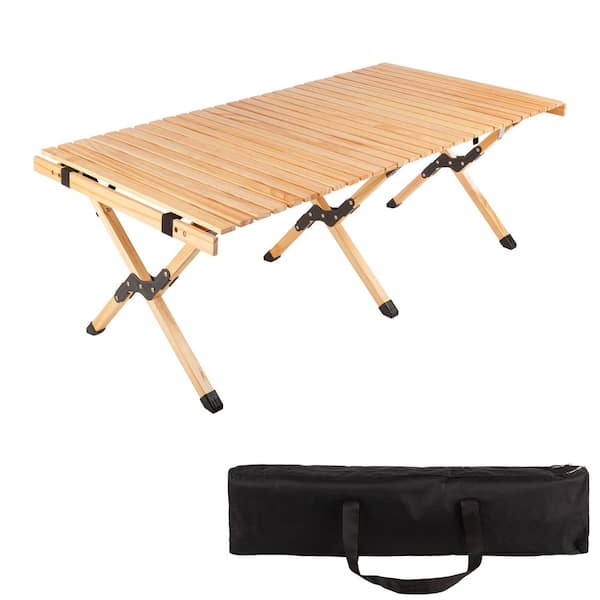 • Foldable legs and roll up wood top fit in the included carry bag