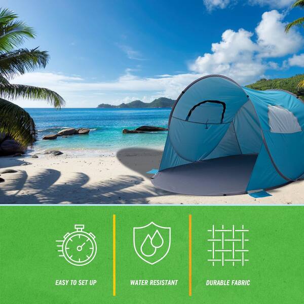 3-Person Pop Up Beach Tent with UV Protection and Ventilation Windows - Water and Wind Resistant Sun Shelter