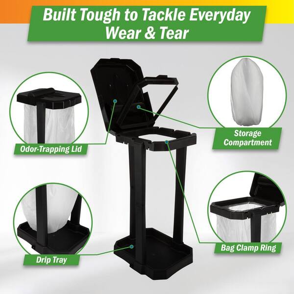 • Tidy design with a built-in drip tray and an odor-trapping lid