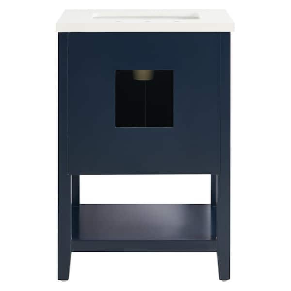 Waldorf 24 in. Free Standing Bath Vanity in Navy with Pure White Quartz Top and Single Sink Ceramic Basin